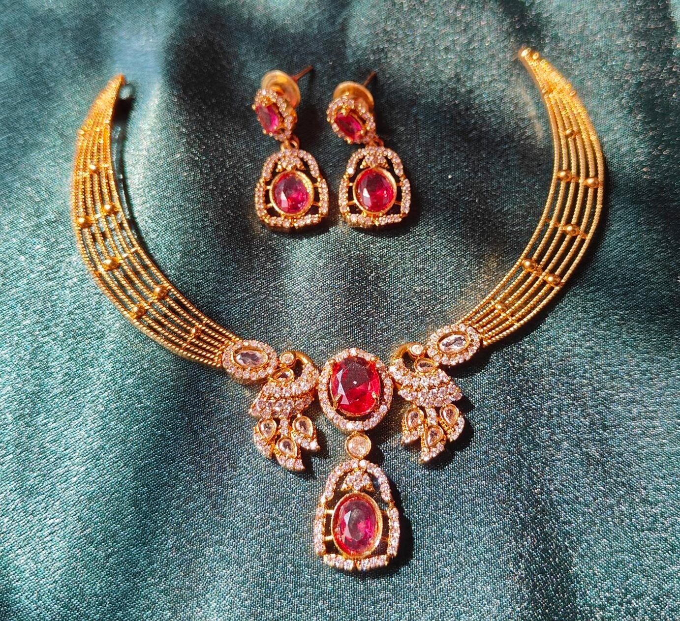Be the first to review “Peacock Red Stone Kada Necklace”